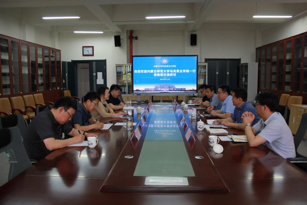 为进一步加强自治区校际间马克思主义学院交流,6月15日上午,内蒙古师范大学马克思主义学院党委书记拓俊杰教授一行5人来我院调研,我院党总支书记兼常务副院长陈智、党总支副书记吕俊、副院长傅锁根、团总支书记兼马克思主义基本原理教研室主任魏月、行政办公室副主任刘凯南参加座谈,座谈会由陈智教授主持。