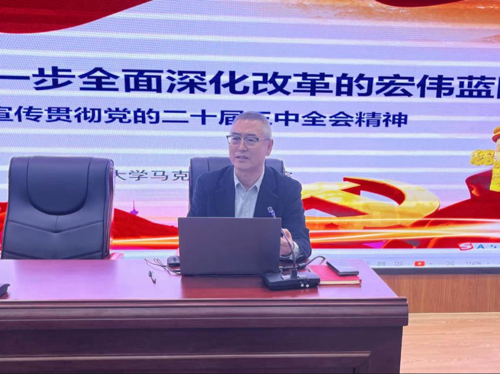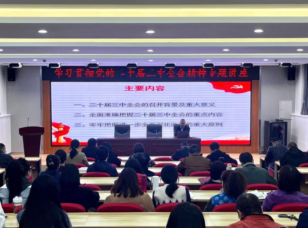 会上,学院副院长徐成芳教授从二十届三中全会的召开背景及重大意义、全面准确把握二十届三中全会的重点内容、牢牢把握进一步全面深化改革的重大原则等三个方面,向与会师生作了专题讲座。他强调指出,学院师生要深刻认识进一步全面深化改革的重要性和必要性,结合教学、科研等学院中心工作,把思想和行动统一到全会精神上来,为推动学校“双一流”建设贡献更多力量。