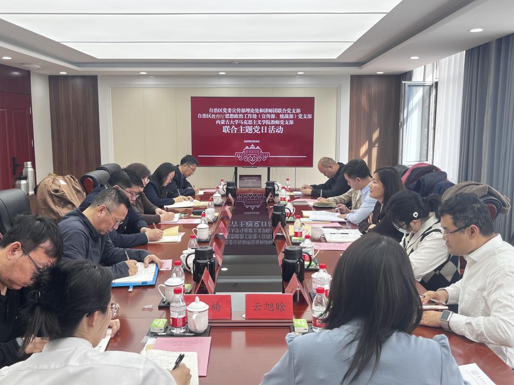 为深入学习贯彻习近平新时代中国特色社会主义思想,落实党的二十大精神,进一步加强高校思政教育,3月6日,内蒙古自治区宣传部理论处、自治区教育厅思政处与开云手机在线登陆入口联合开展主题党日活动。自治区宣传部理论处、自治区教育厅思政处相关负责人,开云手机在线登陆入口领导班子、思政课教师及教师党员代表共同参加了此次活动。