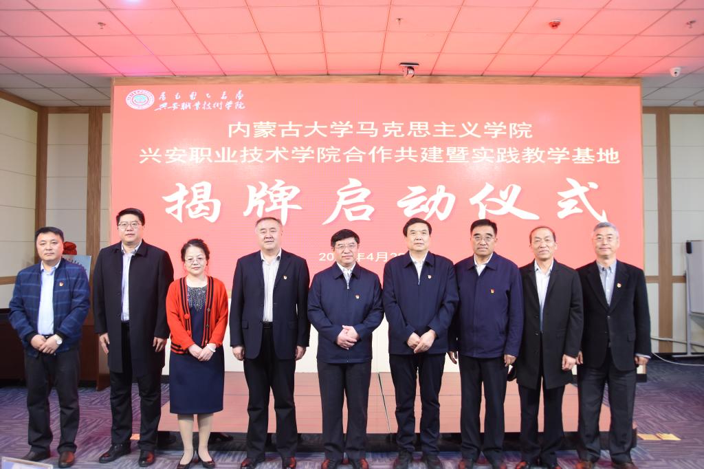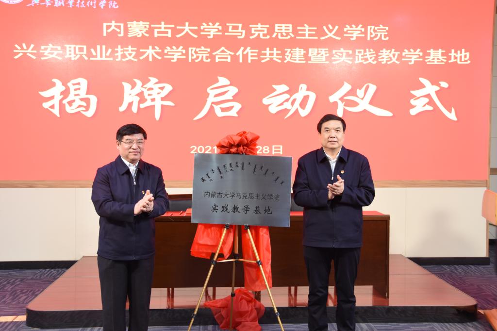 4月28日上午,马克思主义学院教学实践基地挂牌仪式在兴安职业技术学院举行。学校党委书记、马克思主义学院院长朱炳文,兴安职业技术学院党委书记刘文山,兴安盟委宣传部副部长李一兵,兴安盟社科联主席赛音朝克图出席。仪式由兴安职业技术学院党委副书记、院长范勇毅主持。