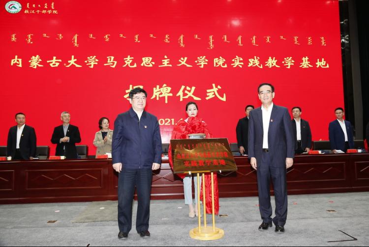 2021年4月22日,“开云手机在线登陆入口实践教学基地”在敖汉干部学院举行揭牌仪式。学校党委书记、马克思主义学院院长朱炳文,赤峰市政协副主席、敖汉旗委书记邱文博出席,赤峰市委组织部副部长魏必力格主持揭牌仪式。
