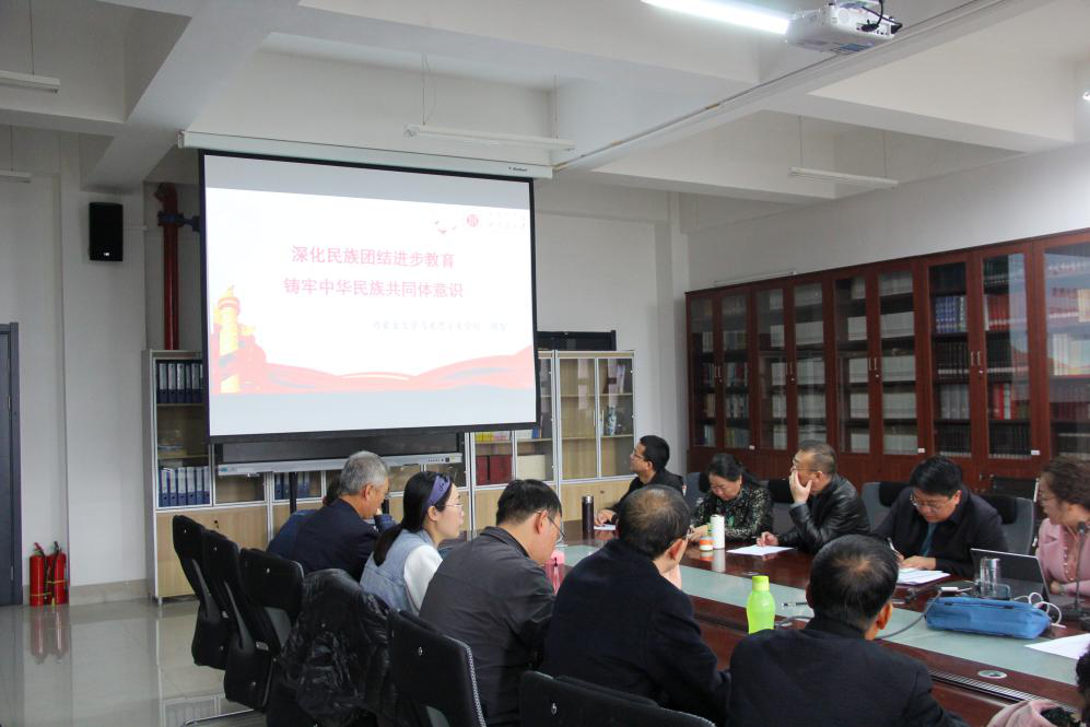 为贯彻落实习近平总书记关于民族工作的重要论述,进一步树牢民族团结意识,增强铸牢中华民族共同体意识的自觉性和坚定性,10月9日上午,马克思主义学院在南校区艺术楼B4003会议室举办“深化民族团结进步教育 铸牢中华民族共同体意识”专题讲座,本次讲座由马克思主义学院党总支书记兼常务副院长陈智作专题讲授,马克思主义学院全体教师参加。