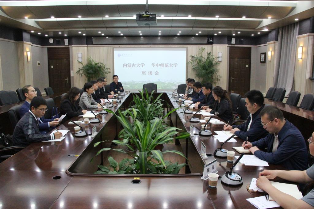 我校党委书记朱炳文一行与华中师范大学党委书记黄晓玫等与会领导和青年教师在座谈会上亲切交流