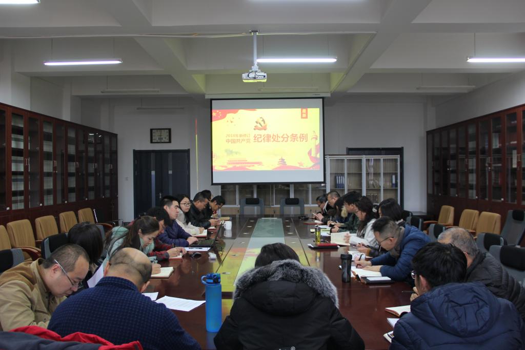2018年11月23日上午,马克思主义学院党总支在南校区艺术楼B4003学院会议室召开学习贯彻习近平新时代中国特色社会主义思想和党的十九大精神的第十次集体学习会,集体学习2018年新修订的《中国共产党纪律处条例》。会议由党总支书记兼常务副院长陈智教授主持,学院党总支部分成员、中心组部分成员及部分教师党员参加了学习会。