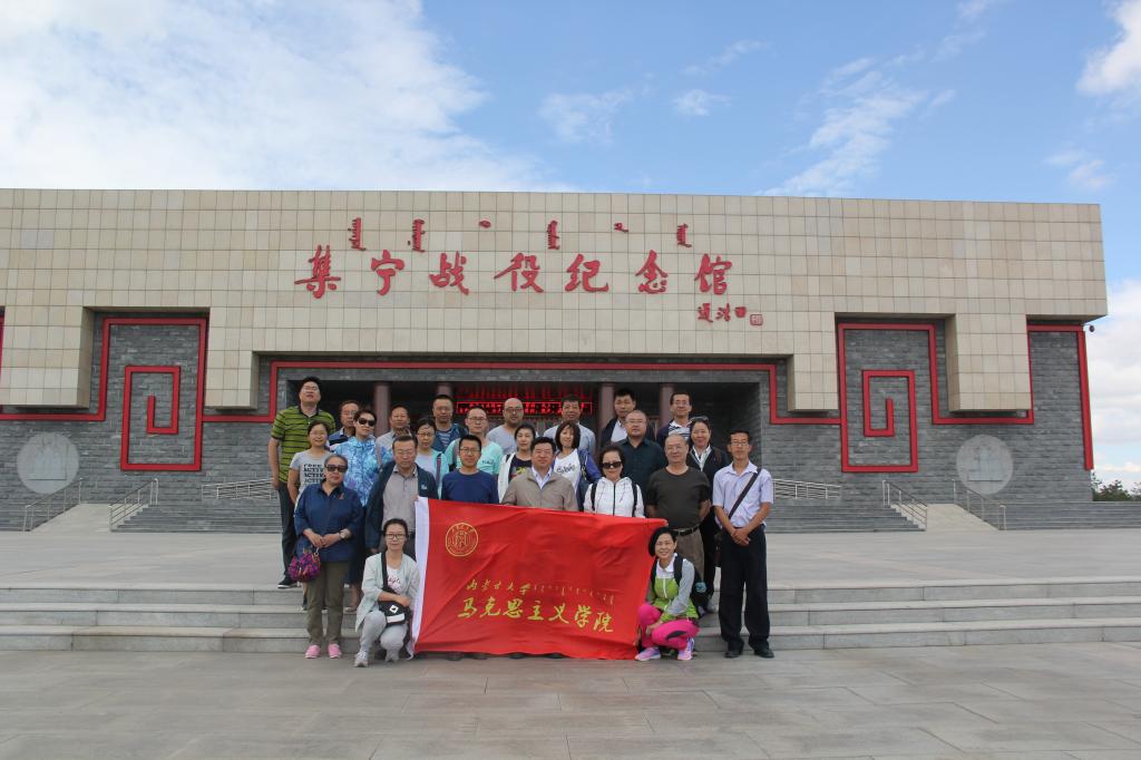 为纪念中国共产党成立96周年,深入开展“两学一做”学习教育活动,6月24日,马克思主义学院党总支组织学院全体教师参观集宁战役纪念馆,接受革命历史传统教育。校党委书记兼马克思主义学院院长朱炳文、党总支书记兼常务副院长陈智、副院长傅锁根、党总支副书记吕俊一同参观。