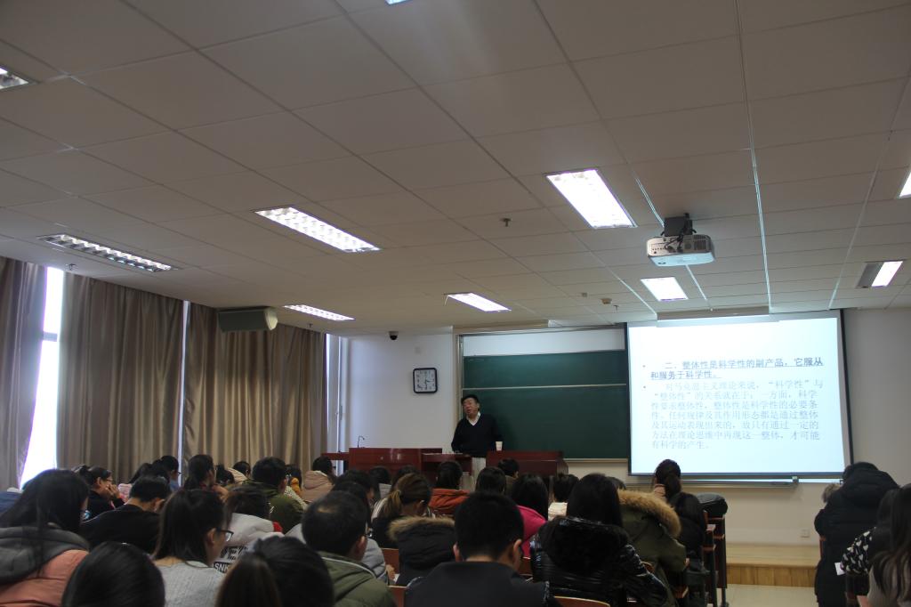 叶险明教授从“拒斥为整体而整体的思维方式”、“整体性是科学性的副产品,它服从和服务于科学性”、“整体的主要构成部分蕴含着整体的基本特征”、“整体是一个不断生成的过程”等四个方面为在场师生奉献了一场精彩的思维大餐。对于叶教授的讲座,大家反响热烈,受益匪浅。