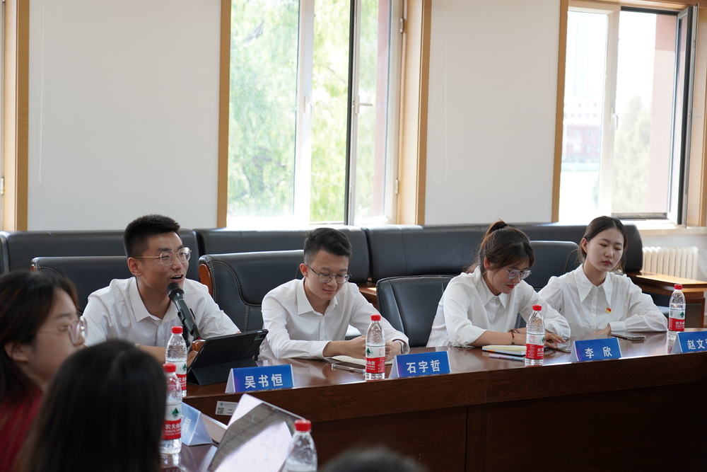 为扎实推进学习贯彻习近平新时代中国特色社会主义思想主题教育,强化思政育人,增进校际间交流学习,7月11日下午,复旦大学“星火”党员志愿服务队与我院“旗帜·领航”学生理论轻骑兵举办了座谈交流会。复旦大学党委研究生工作部部长陈洁、副部长兼“星火”党员志愿服务队指导老师孙冰心、思政办副主任兼“星火”党员志愿服务队指导老师范佳秋,马克思主义研究院助理研究员谈思嘉以及“星火”党员志愿服务队学生代表;我校研究生院院长赵海东、副院长敖文格日乐,马克思主义学院副教授兼宣讲团指导教师魏月,马克思主义学院讲师兼宣讲团指导教师李辰、李冰、赵文铎以及“旗帜·领航”学生理论轻骑兵学生代表参加了会议。会议由赵海东主持。