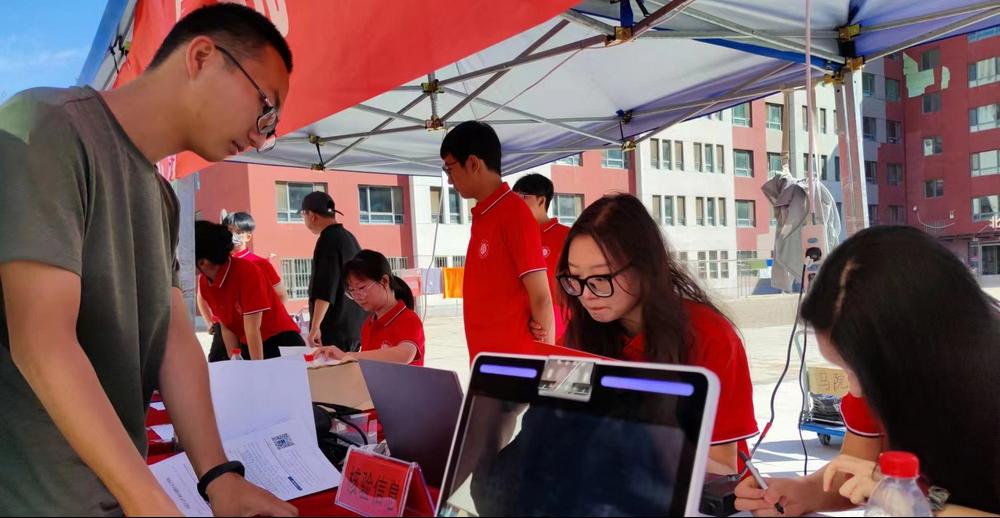 8月19日上午,学院迎新人员在帐篷报到处有序开展核验通知书、人脸识别、发放校园卡等一系列工作,帮助新生顺利完成了报到流程。