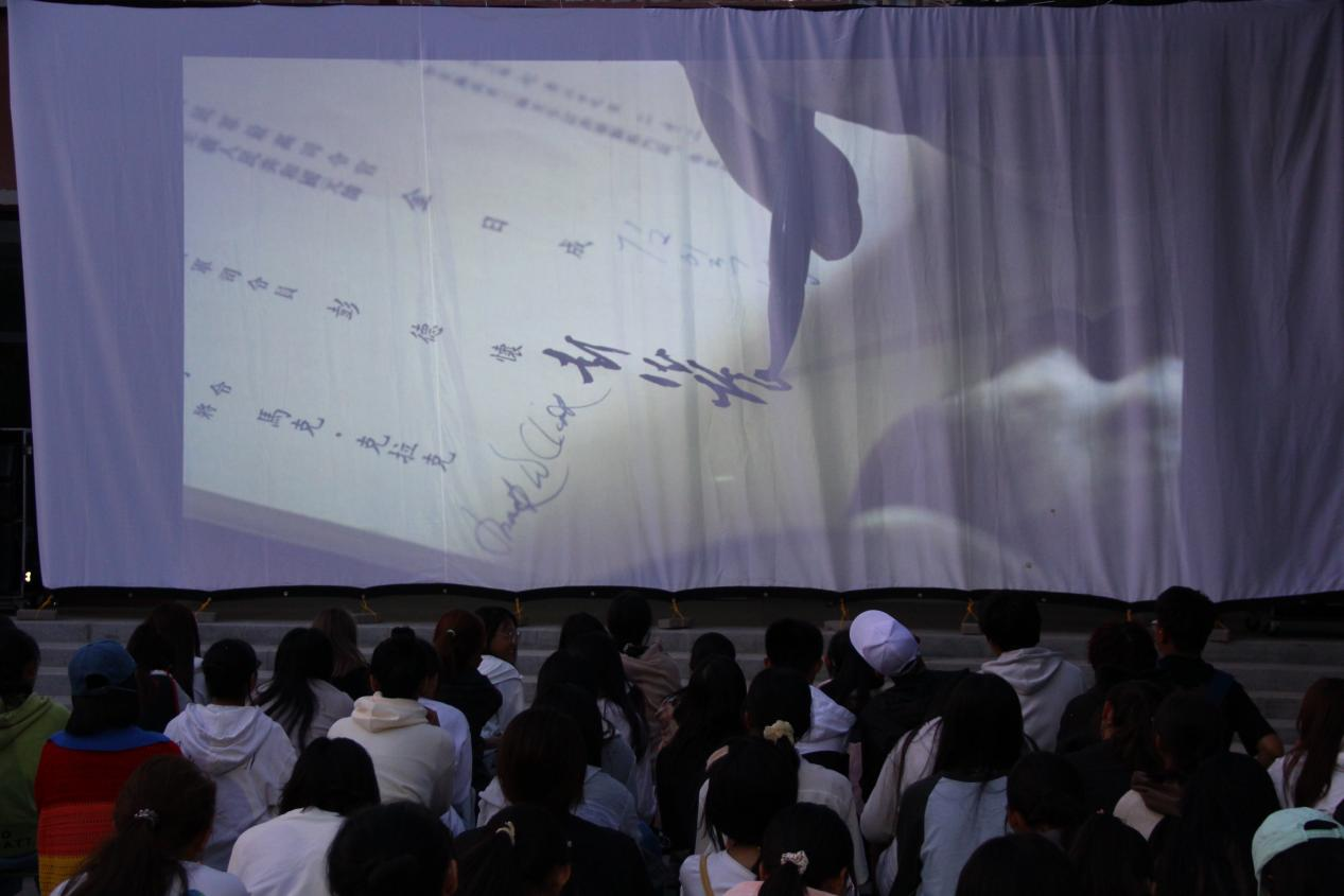 2023年9月14日,旗帜领航·光影思政课活动暨“思政影院”开映典礼在马克思主义学院南广场举行。校党委委员、宣传部部长王烨辉,后勤处处长周国权,马克思主义学院党委书记吕俊、副院长徐成芳出席本次活动。作为新学期开学的一堂“特别”的思政课,来自各学院的两百余名学生参加了此次活动。