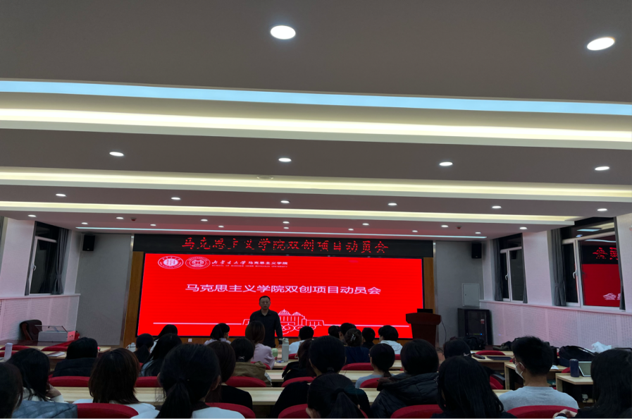 为鼓励学生开展创新创业活动,推动创新创业教育融入人才培养全过程,12月11日,学院召开“双创”项目动员大会。会议由思政课实践创新中心主任韩冬副教授主持,全体本科生与部分研究代表参加了本次会议。会议就近年来国家鼓励大学生开展“双创”活动的相关政策进行了解读,分析了对近年来我校“双创”项目和竞赛活动的开展情况,并重点针对学校下发的《内蒙古大学教务处关于组织申报 2024 年度大学生创新创业训练计划项目的通知》进行了整体布置。