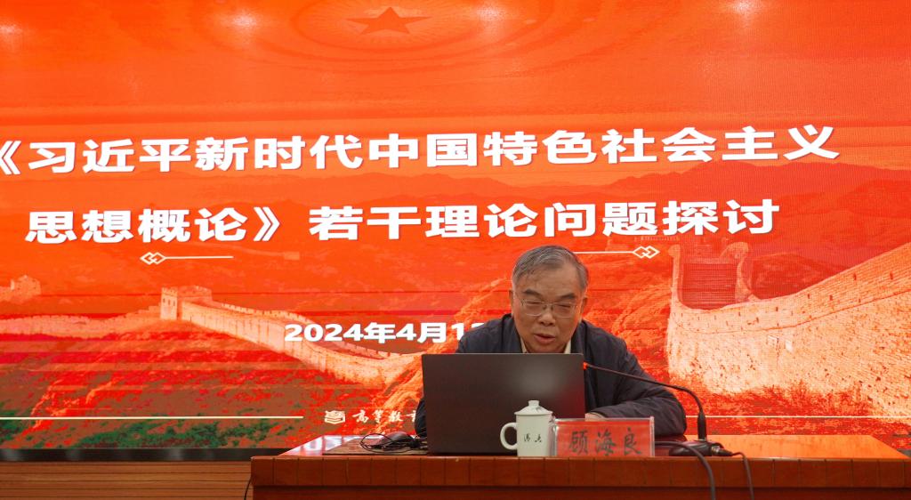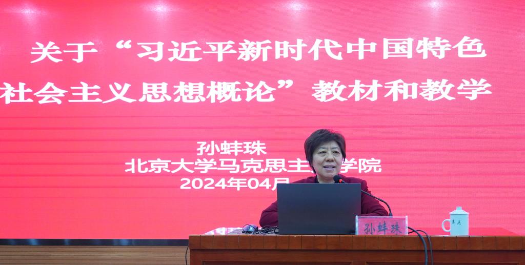 此次集体备课活动邀请了中央马克思理论和建设工程咨询专家、首席专家、教育部思想政治理论课教育指导委员会主任、北京大学博雅讲席教授顾海良教授和中央马克思主义理论研究和建设工程首席专家、教育部思想政治理论课教育指导委员会总教指委主任委员、北京大学马克思主义学院党委书记孙蚌珠教授进行专题讲座。二位专家分别就“习近平新时代中国特色社会主义思想概论”若干理论问题与“习近平新时代中国特色社会主义思想概论”教材和教学相关内容进行系统深入解读。顾海良教授强调,每位思政课教师都务必深入理解和掌握教材结构,清晰把握教材内容间的逻辑关联,这是有效地进行课堂教学的重要前提。孙蚌珠教授强调了课程内容边界感的重要性,讲历史进程的时候不要流水账式的简单罗列,确定重点问题时要想清楚理论和教材的关系。