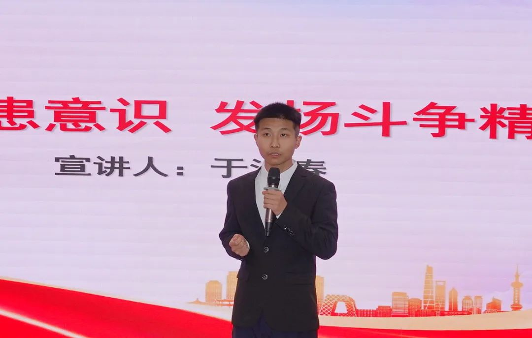 杨涛从2014年习近平总书记创造性提出“总体国家安全观”概念切入,系统梳理了十年间这一战略思想从“破土萌芽”到“枝繁叶茂”的发展历程。“旗帜·领航”理论轻骑兵四名同学分别从“理论之思——解码总体国家安全观的‘十个坚持’” “信仰之光——照亮国家利益的青春坐标” “忧患之智——破解风险挑战的‘斗争密码’” “合力之道——书写万众一心的‘安全方程’”开展理论宣讲。