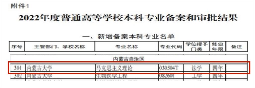近日,教育部印发《关于公布2022年度普通高等学校本科专业备案和审批结果的通知》,我校申报的马克思主义理论本科专业喜获批准,授予法学学位。这是我院继获批马克思主义理论一级学科博士学位授权点后,学科与学位点建设的又一突破,构建完成马克思主义理论学科本硕博一体化人才培养体系。