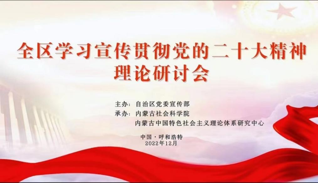 为深入学习贯彻党的二十大精神,学习习近平新时代中国特色社会主义思想,推动习近平总书记交给内蒙古的五大任务落地落实,由自治区党委宣传部主办、内蒙古社会科学院、内蒙古中国特色社会主义理论体系研究中心承办的“学习宣传贯彻党的二十大精神理论研讨会”于12月20日在呼和浩特召开。自治区党委常委、宣传部部长郑宏范到会指导并致辞。会议以线上线下相结合的方式进行,来自中国社会科学院、中央党校(国家行政学院)、中国人民大学等区内外高校、科研院所的17位专家学者作了交流发言,近80位专家学者参会。会议旨在搭建研讨交流平台,发挥理论研究作用,为推动党的二十大精神在内蒙古落地见效贡献理论力量。
