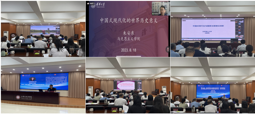 主旨报告由六位专家分两个阶段完成。第一阶段主题报告由开云手机在线登陆入口副院长傅锁根教授主持,北京大学马克思主义学院孙代尧教授、清华大学马克思主义学院院长朱安东教授、北京理工大学马克思主义学院院长刘新刚教授分别作了题为《马克思主义中国化时代化的学理和哲理》《中国式现代化的世界历史意义》《中国式现代化与国家治理理论创新》的主题报告。
