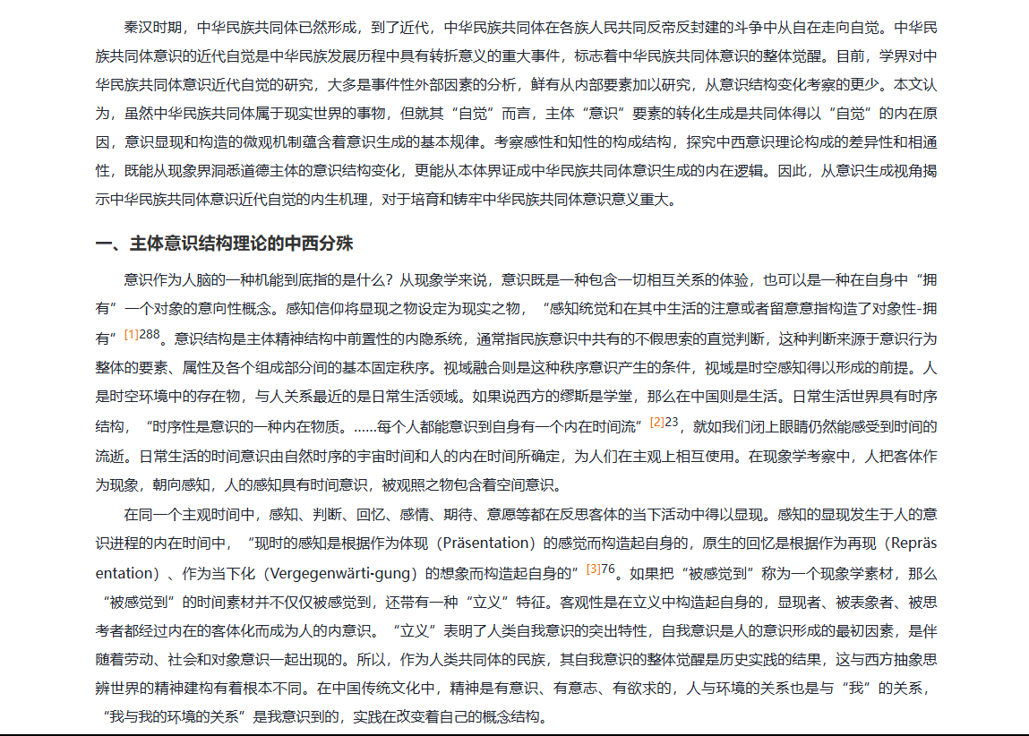 关键词:中华民族共同体;意识;自觉;内生机理