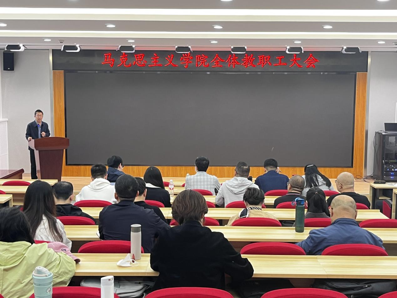 会上,傅锁根传达学习习近平总书记在全国教育大会上的重要讲话精神,通报了学院在上一阶段的工作情况,并就下一步评估推进工作作了详细部署。他指出,审核评估的过程,既是一次工作检验,更是提高思政课教育教学质量、提升学科建设水平、推动学院内涵式发展的关键抓手,要以新一轮本科教育教学审核评估体系指标为指导,围绕评估范围、内容和重点,梳理学院在学生能力培养、教师教学能力提升、教学质量监控、教学日常运行、教学材料规范性等方面的工作举措,确保高质量完成自评自建工作任务,切实把“以评促建、以评促改、以评促管、以评促强”落到实处,提升教育教学水平,实现学院各项事业高质量发展。